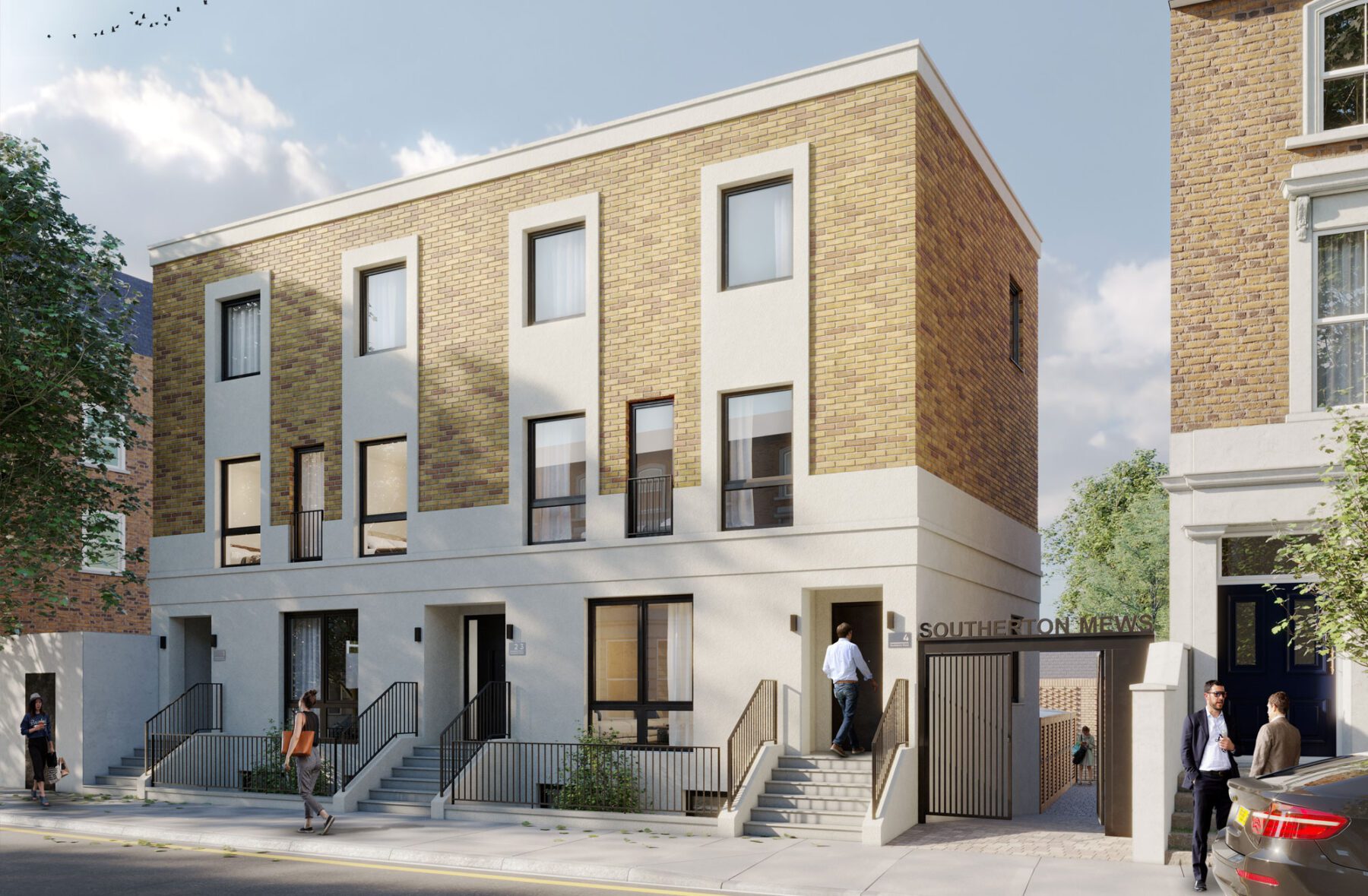 New build collection of contemporary mews houses and apartments nestled in a quiet Hammersmith neighbourhood.